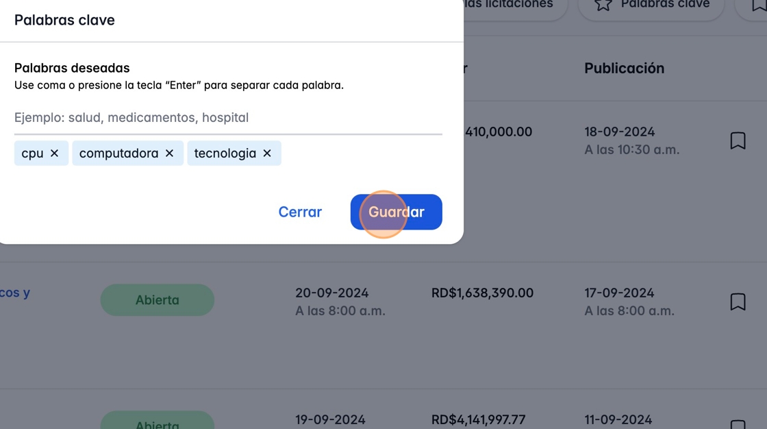 Tip: Listo ya ha guardado sus palabras claves y sus preferencias de notificaciones.